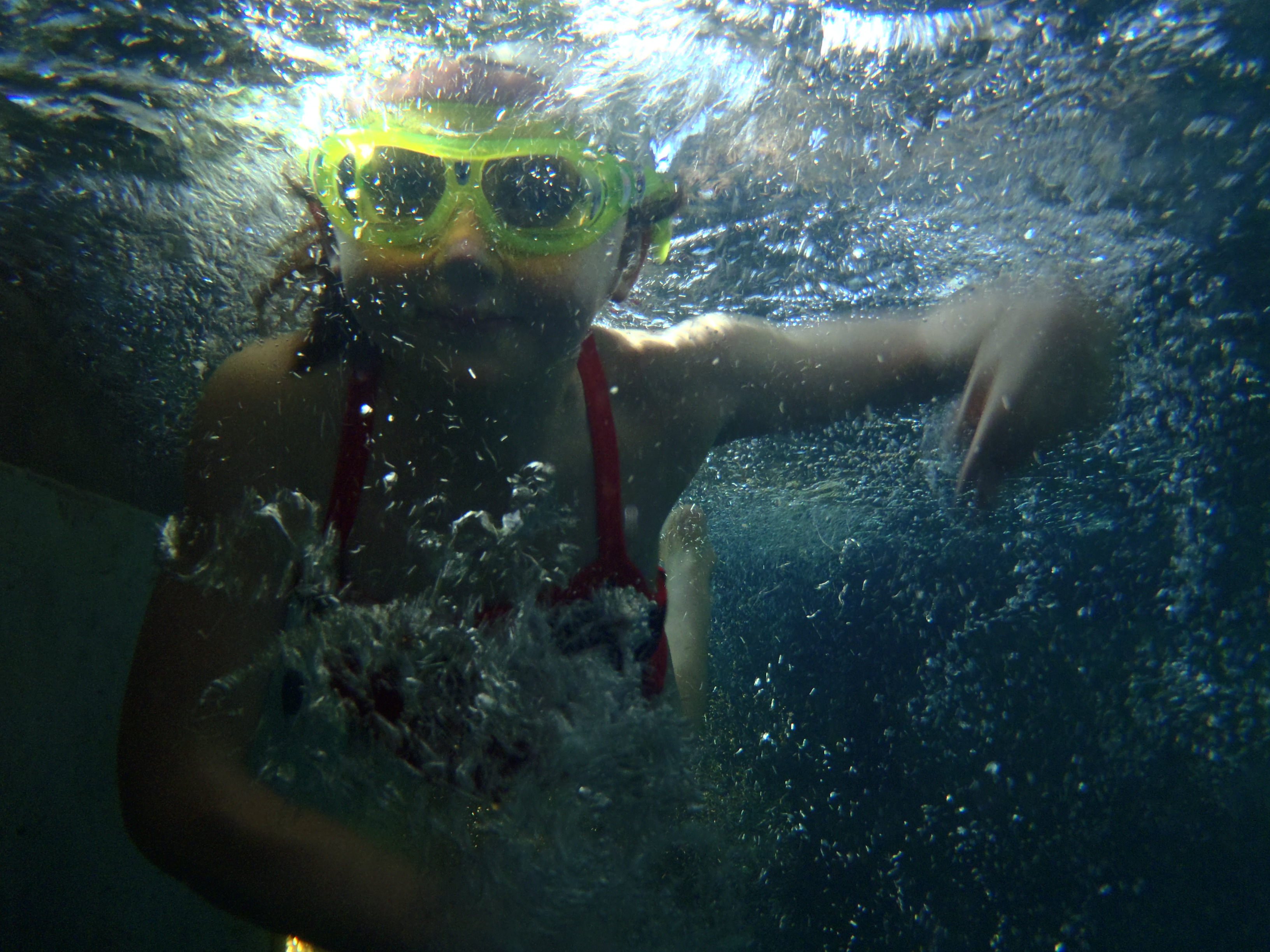 One way I remove the mystery of what is going on under that water is by, quite simply, showing themselves what they look like under there. A simple underwater camera helps take their mind off of what they are doing because they are so excited about what I am doing with that silly camera!