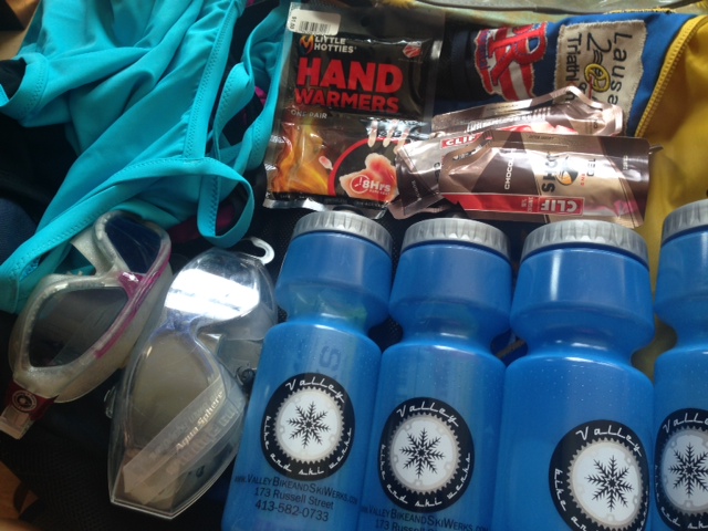 What water bottles do I want for what feedings? What thermos should I pack for hot feedings? How many GU packs do I want? How often do I want to feed? Did I feed often enough on my last long swims?
