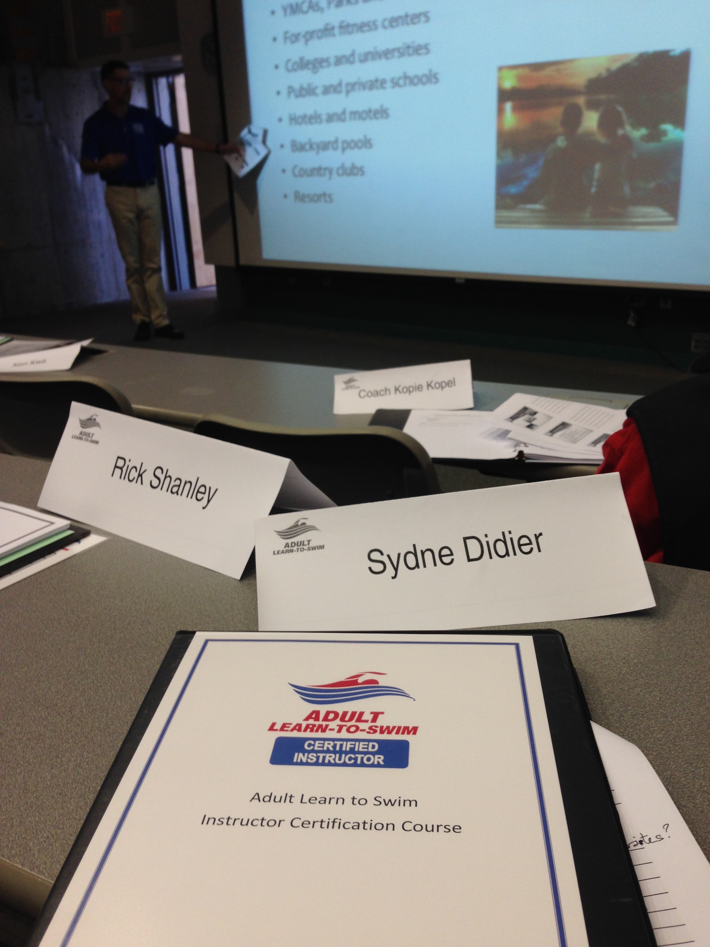 We talked about everything from the statistics of how many adults are unable to swim the length of a pool (37%), to the particulars of running your own program. We discussed the different types of adult learners from fearful to and specific techniques for instruction in each stroke.